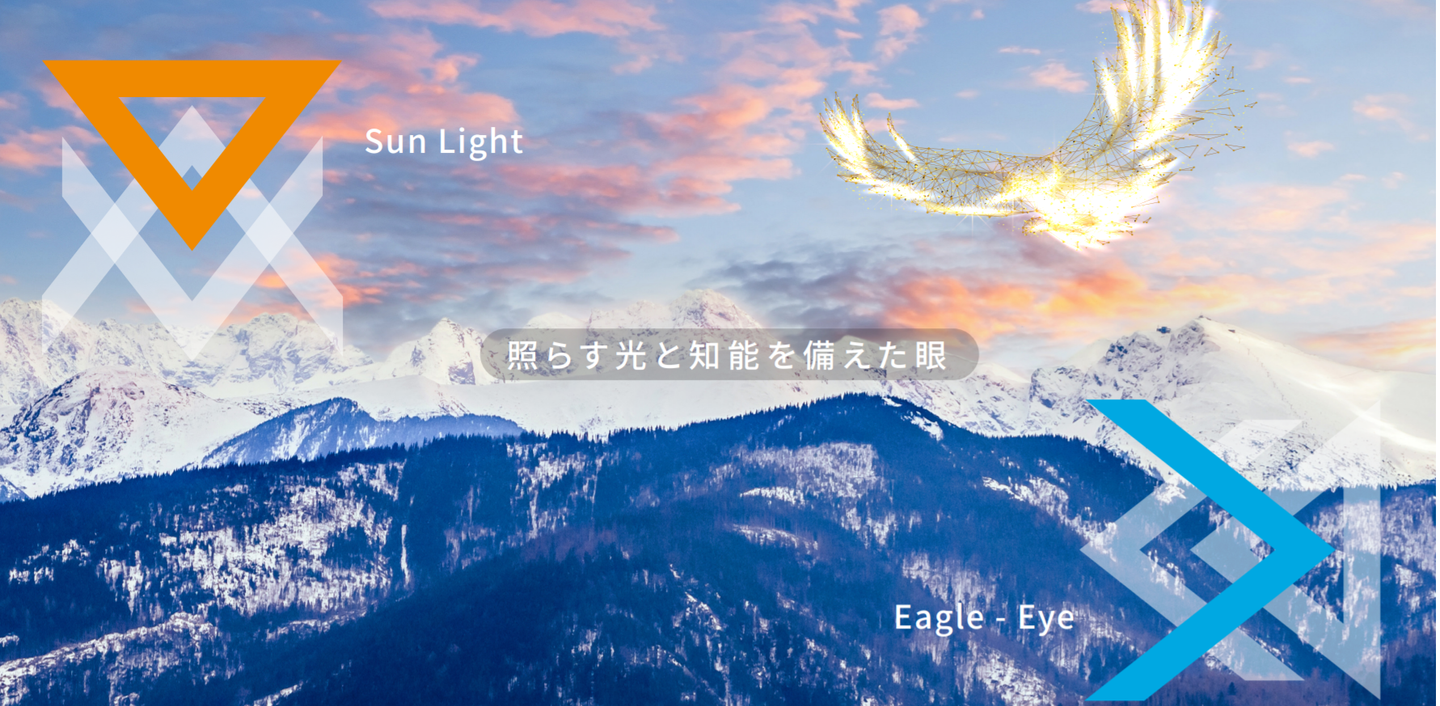 データの海から埋もれた価値あるデータを太陽が照らし、獲物を狙う鷹の様に見つけ出す。埋もれてしまっている価値にスポットライトを当てて輝かせようという、そんな意志が込められています。