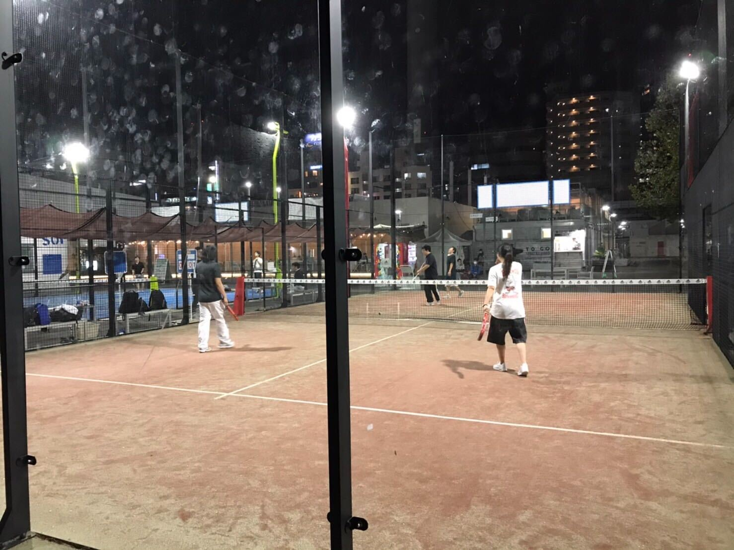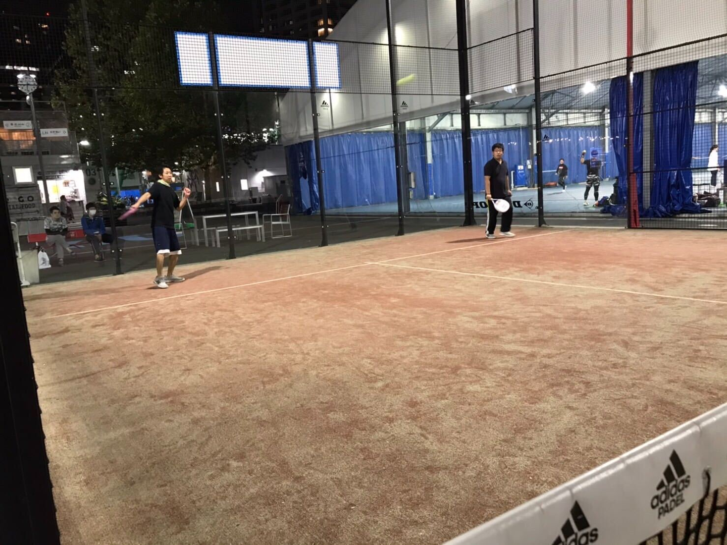 当日、隣のコートとは2メートル離れており、ガラス張りの屋外コート。 プレー中はマスクは外してOKとの事なのでプレー中以外のマスク着用(撮影時は外しました)、ソーシャルディスタンスを守ってプレーを楽しみました。