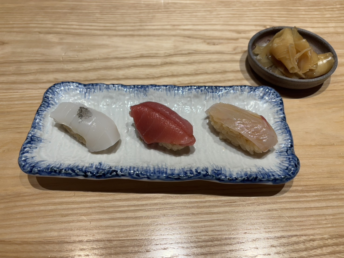 エレベーターで11階へ上がると、街の喧騒を忘れるような静かで洗練された空間が広がります。 この日はカウンターではなく個室を予約していたので、周囲を気にせず、ゆったりとお寿司を楽しめました。 部屋の雰囲気も落ち着いていて、大人のディナーにぴったり。 シャリは控えめなサイズで最後まで美味しくいただけました。 また、個室だからこそ会話も弾み、目の前の料理に集中できるのも嬉しいポイント。