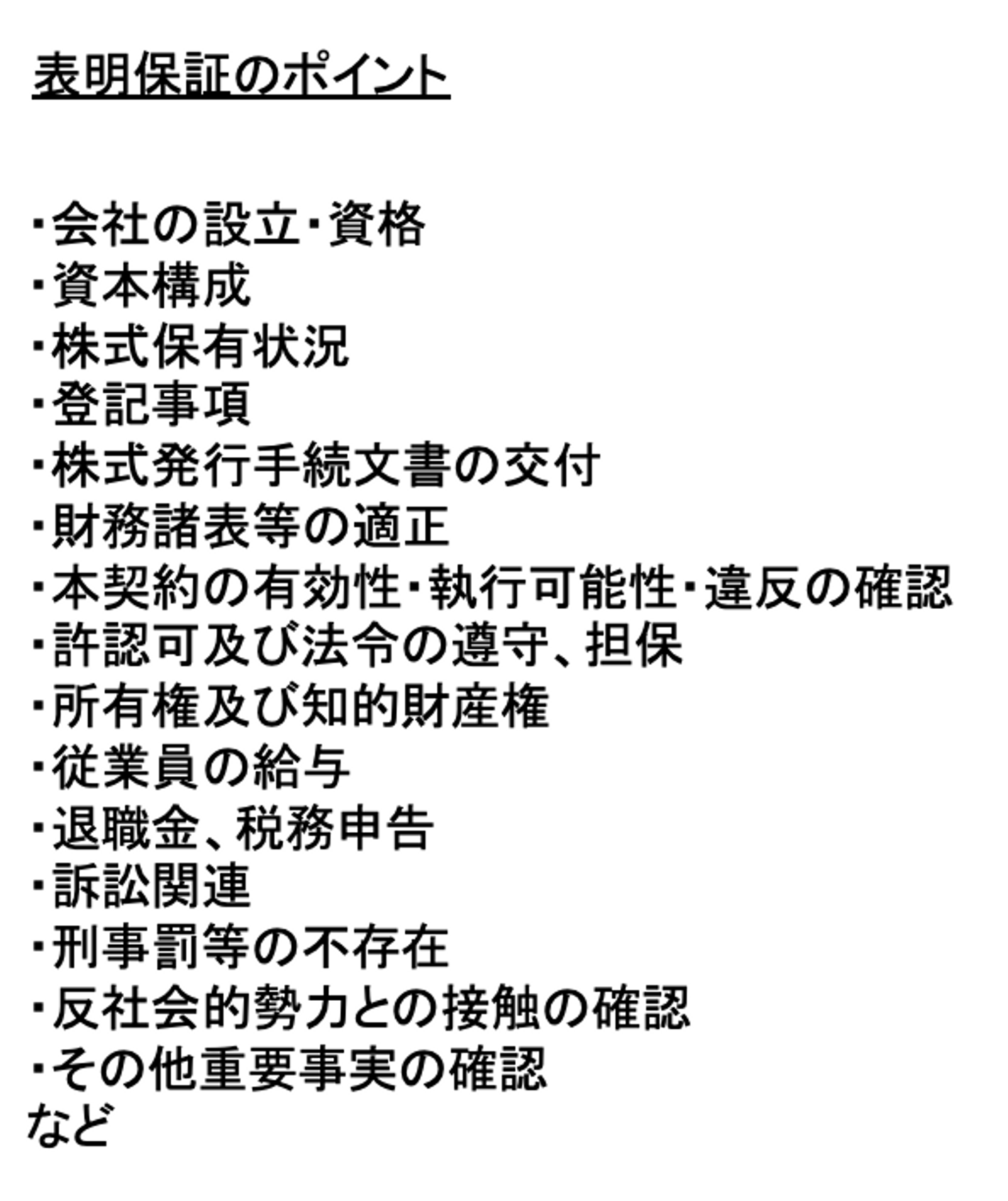 なぜならば表明保証をはじめ、取引当事者の実態と合っているかの確認がM&A契約の重点事項となるからです。
