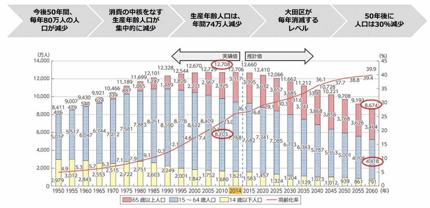 M&A増加の背景として、国内人口の急激な減少が挙げられます。