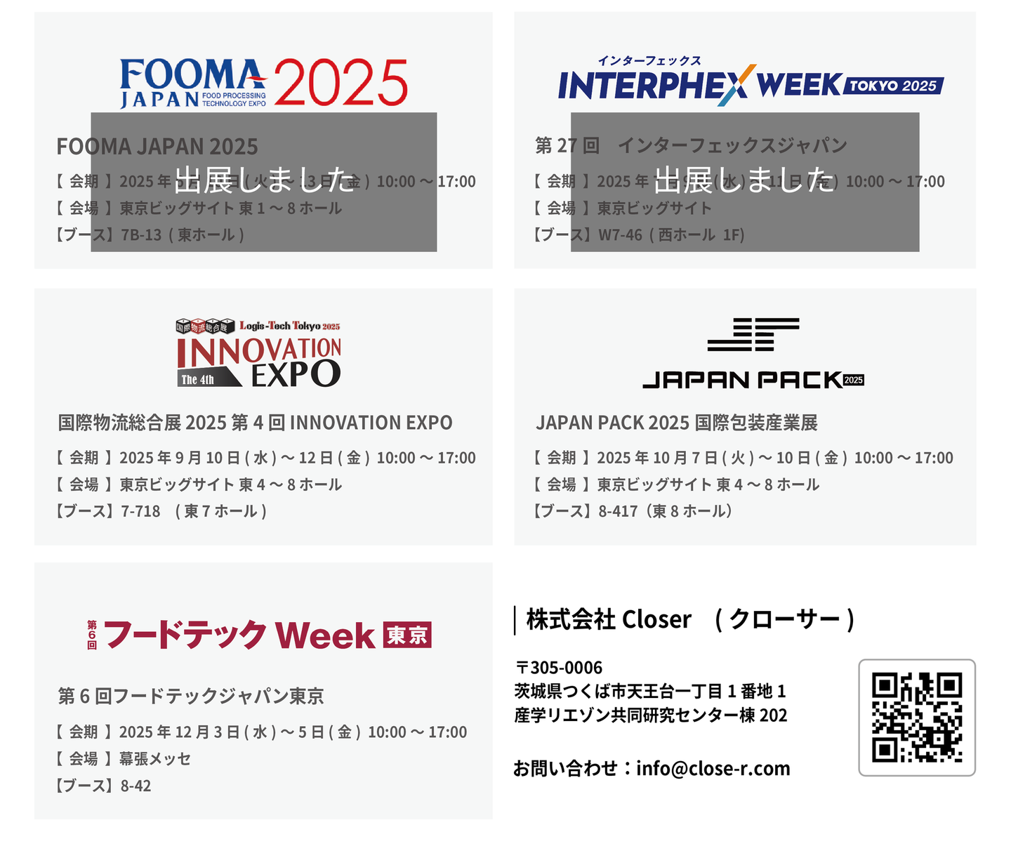 2025年に出展する今後の展示会情報をお知らせいたします。