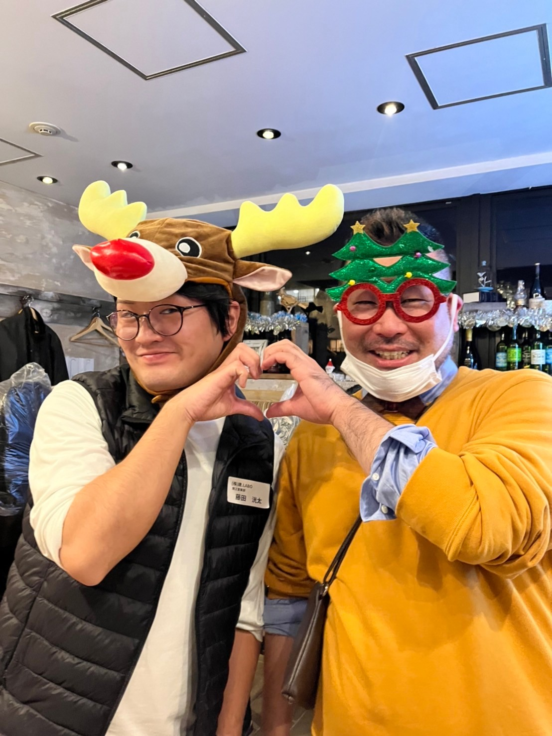 クリスマスが近いということもあり、幹事が仮装グッズを持ち寄ってくれました。