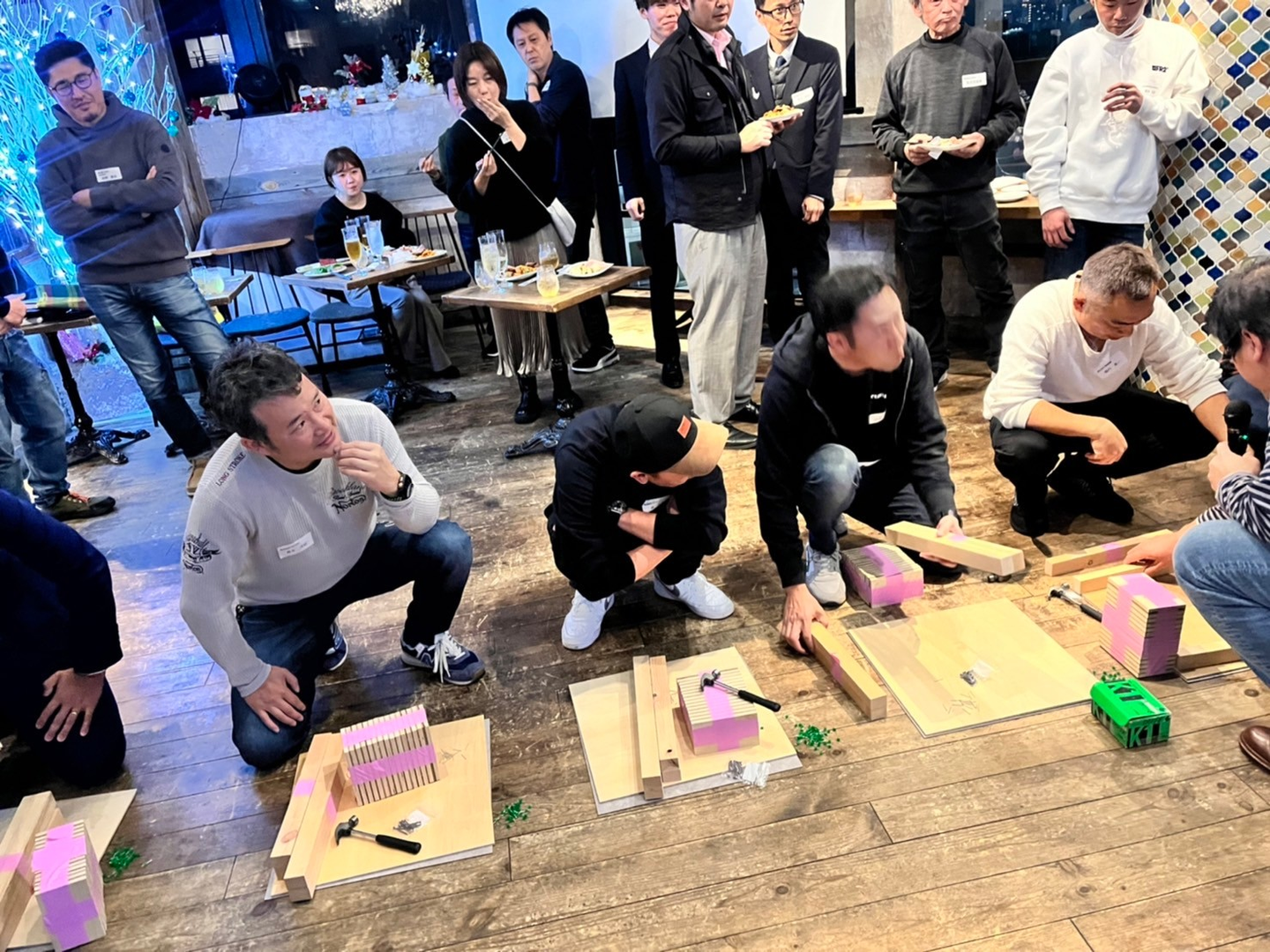 景品を賭けて各施工業者の皆さんに、オリジナルの造作ゲームで速さと技術を競ってもらいました!