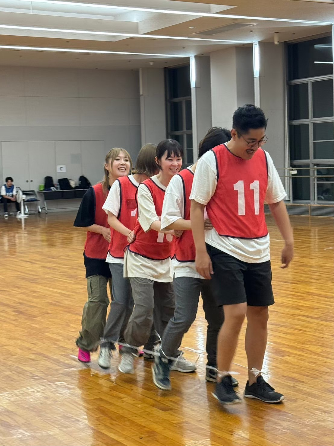 最初の競技はムカデ競争。