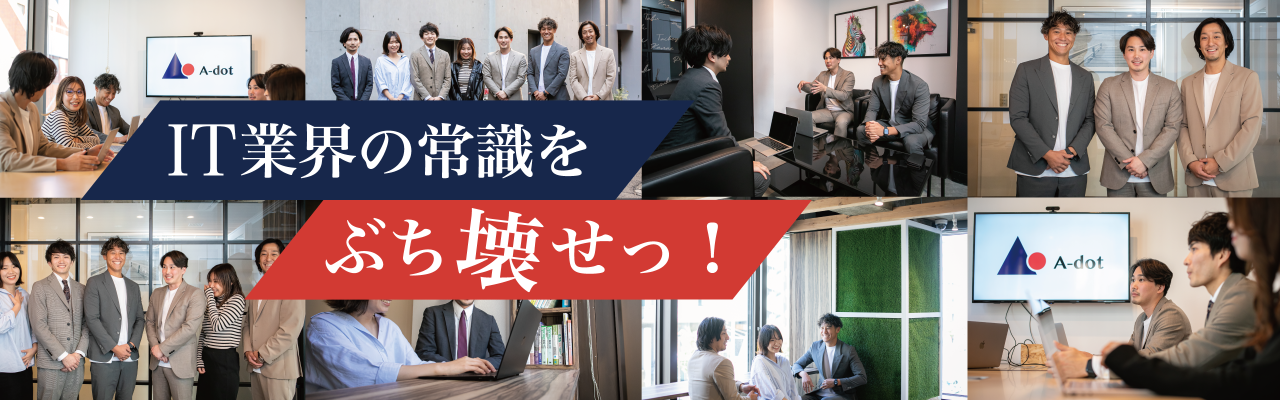 常に創造と挑戦で溢れる会社を目指しています。 ビジネスを通して、一人ひとりが輝き社会に貢献していく、そんな想いから生まれたの株式会社A-dotです。 A-dotに関わるすべての人を幸せにできるようにありたい。 誰しもが持っている可能性に一緒にチャレンジして、日本を盛り上げませんか。 弊社は人材サービス(SES)、受託開発、コンサル、ファイナンスの事業を行っています。 多様な取り組みと楽しみながら成長できる環境をつくっています。 ぜひ、一緒に最高の会社作りをしましょう!!