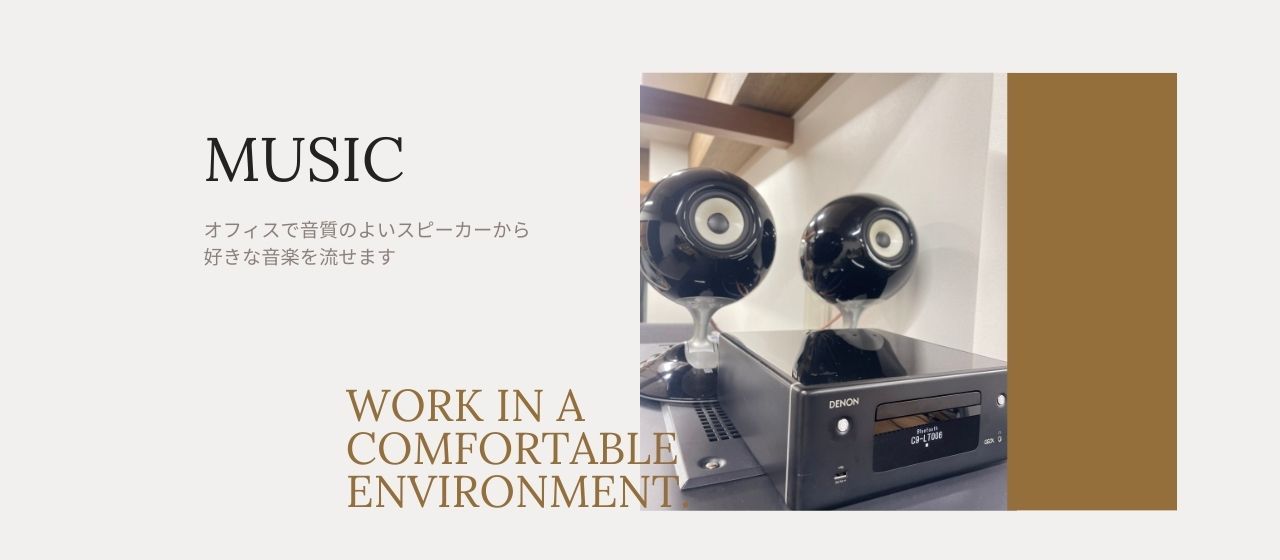 お仕事中はBluetoothやAirPlayなどで好きなパソコンやスマートホンを接続して好きな音楽を流せます。