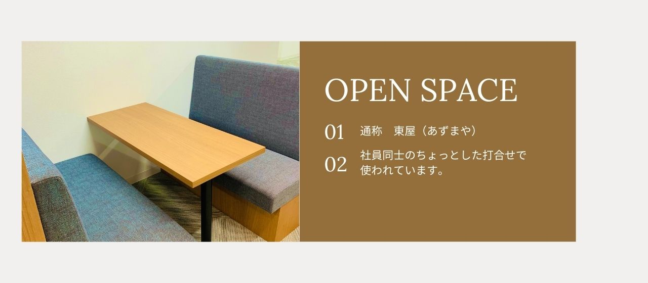わたしたち社員の間で通称「東屋(あずまや)と呼ばれているオープンスペースでは
