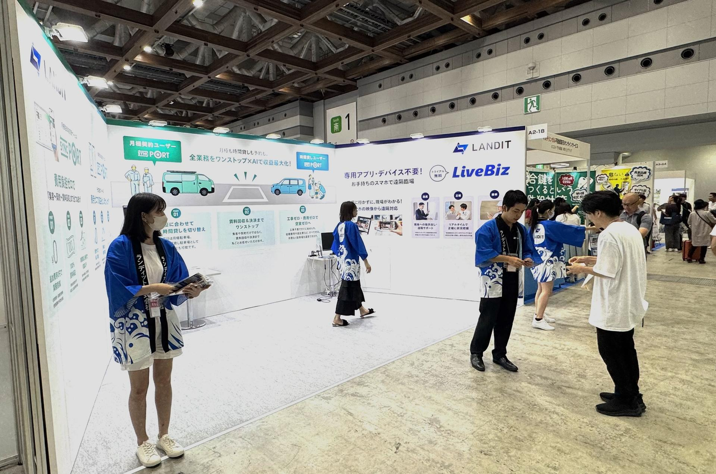 私たちは賃貸住宅 管理・仲介EXPOに出展させていただきました。8つのプロダクトの中で、今回は①短期駐車場運営サービス「PIT PORT」、②月極駐車場管理サービス「SYNC PORT」、③遠隔臨場「Live Biz」をご紹介しました。