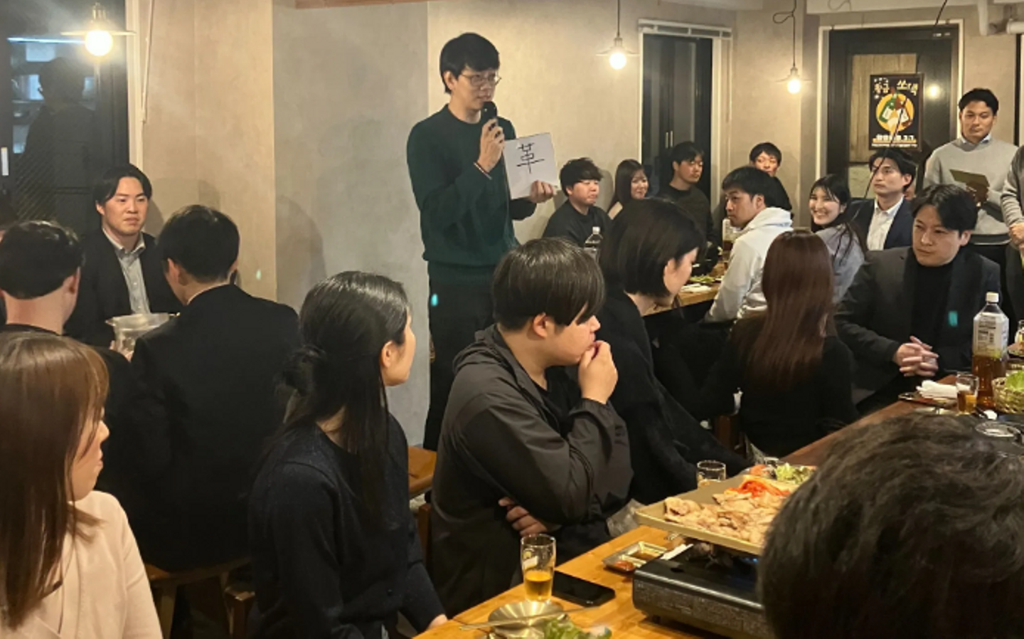怒涛の年度末を終え、4月1日には心機一転、期初会が開催されました。場所は、会社の近くの韓国料理屋さん。この日のためにコーポレート本部がリサーチを重ねて見つけ出した、穴場のお店です。