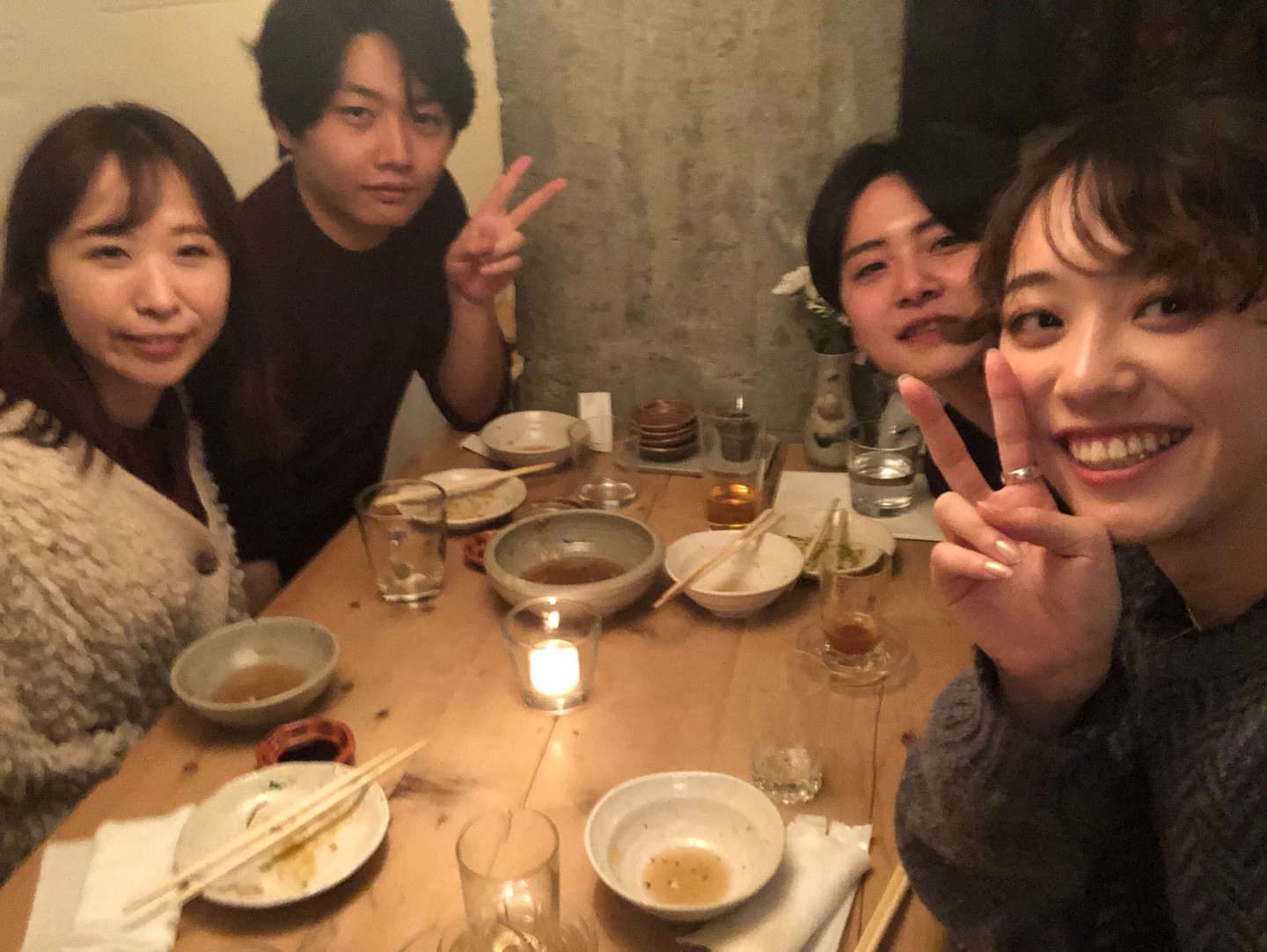 (インターン先での飲み会の写真 左奥:神崎陸 左手前:道満)