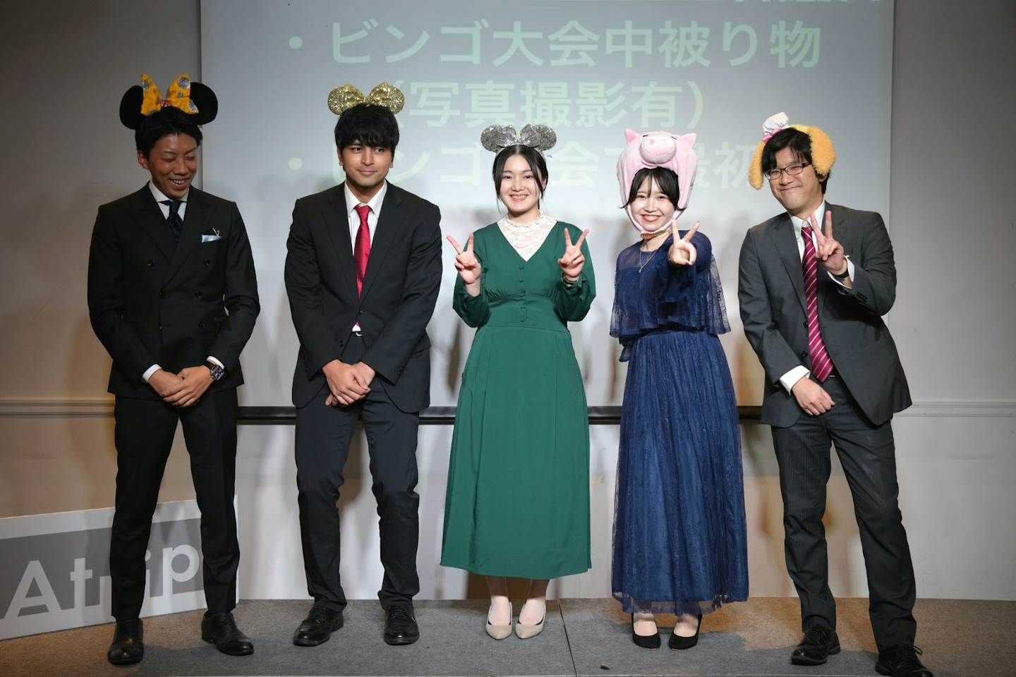 ちなみに最下位のチームには、「ビンゴ大会終了まで被り物着用」というなんとも可愛らしい罰ゲームが課されていました(笑)。