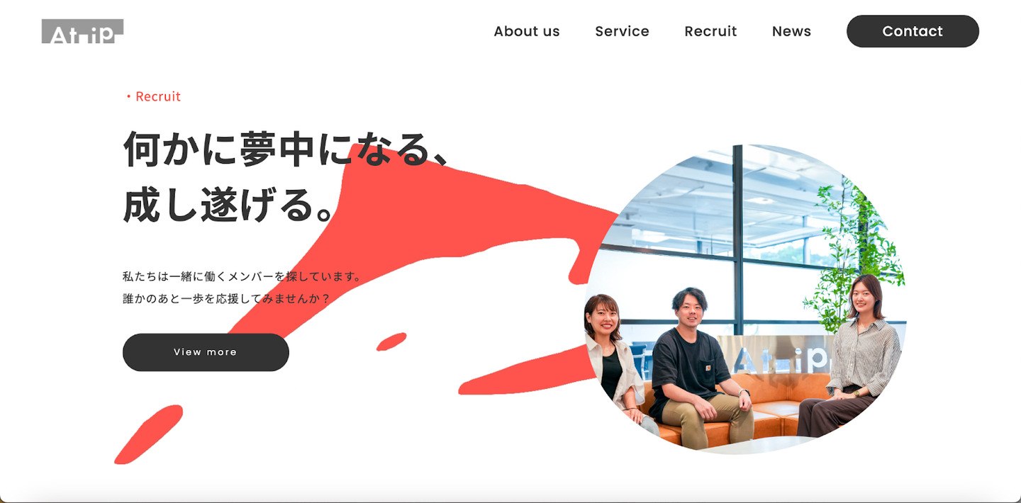 Atipのフレッシュでエネルギッシュな雰囲気や、若者の挑戦や成長を連想させる赤をテーマカラーに、活気ある社員たちの雰囲気や、多様な事業を行うAtipの面白さをサイトで表現したとのことです。