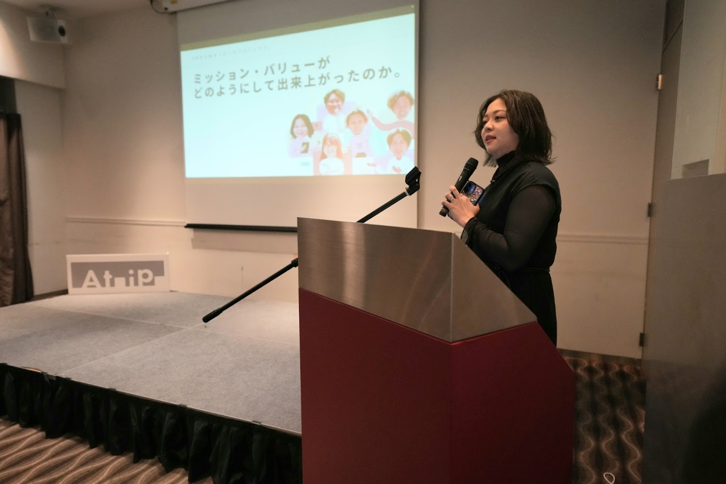 各事業部の発表の後は、マーケティング事業部長の小薗江から6期目から新たに策定したAtipのスローガン・ミッション・バリューが発表され、これらがどのような意図で策定されたのか、どういった想いが込められているのか、などが共有されました。