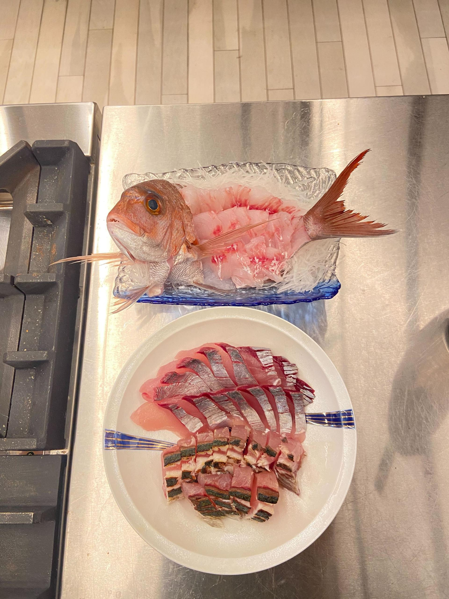 はい、このように大量に魚を仕入れた後は半日くらいかけて全員で捌きます。その捌いた魚は島の給食センターやEntô diningに送ることが多いです。毎日、大量の魚を捌くので必然的に捌くのが上手くなっていきますし、アナゴなどの珍しい魚がはいってきて捌けたときはとても嬉しかったです。