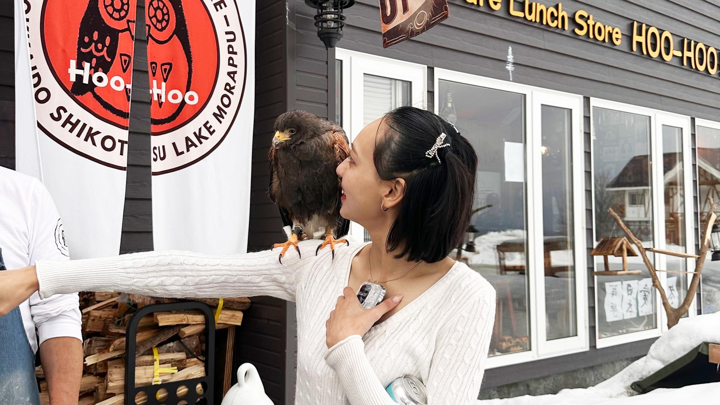 北海道といえばジンギスカン。迎えてくれたのは鷹。