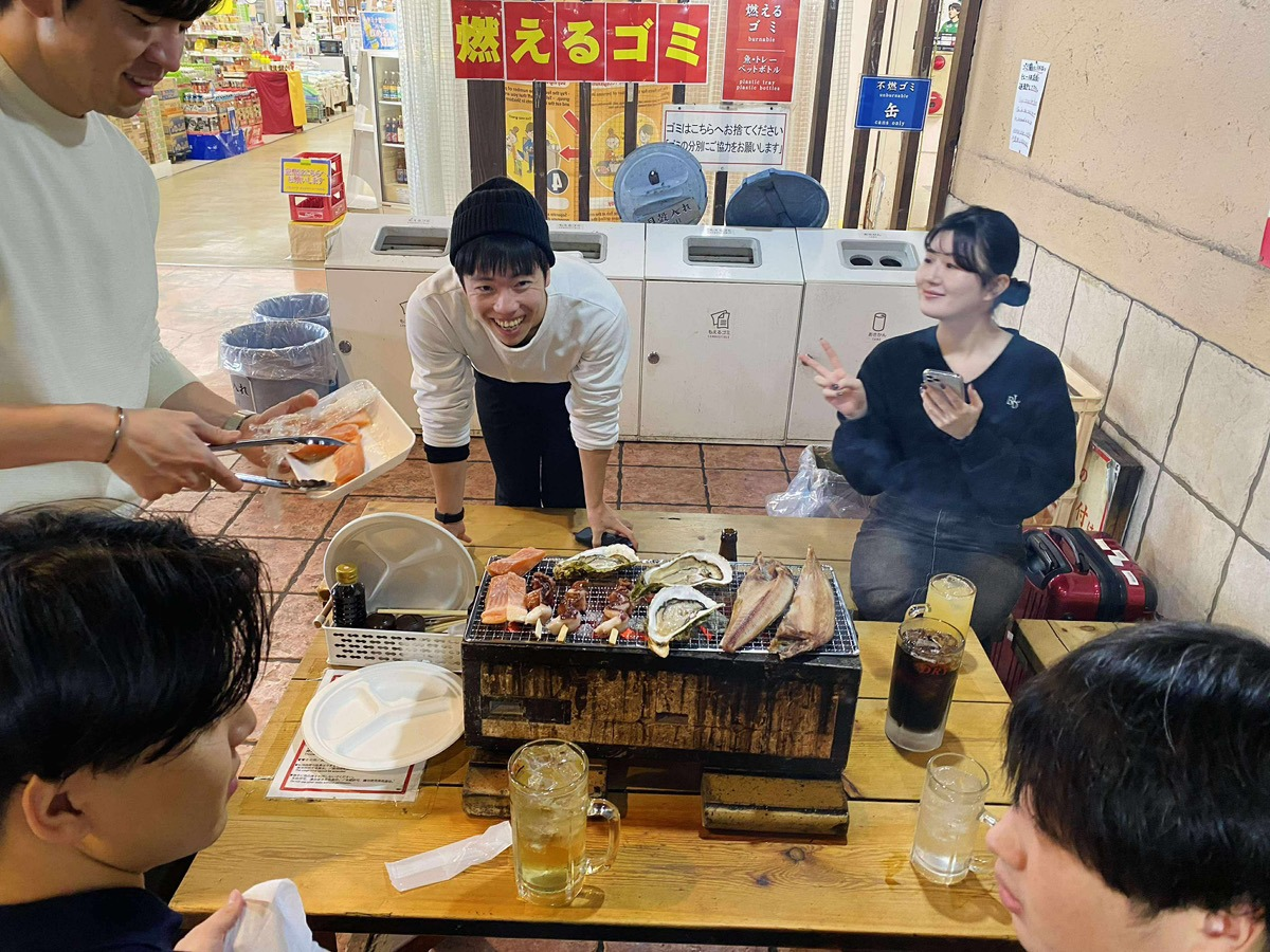 昼食は海鮮BBQ!火を囲んでチームワークと個性が光る✨