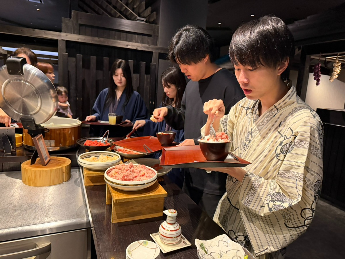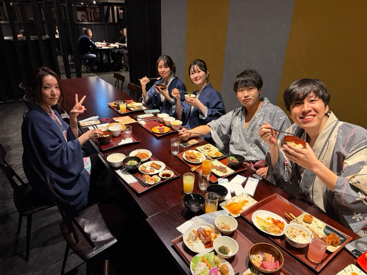 また、旅館についてから途中合流の社員もいて、海鮮市場で食事できなかった分、ビュッフェを何周もして、存分に楽しんでいました笑