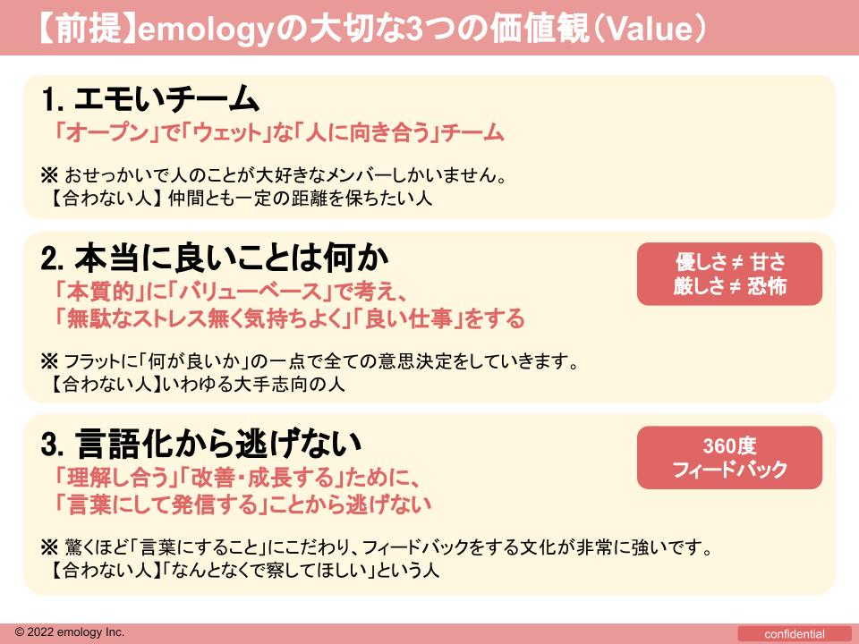 つまり、360度フィードバックはemologyが大切にしている3つの価値観そのもの。