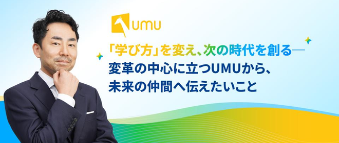 UMU(ユーム)テクノロジーは、人の可能性を最大化させる「学び」のリーディングカンパニーとして、世界を”良く”していきます UMUのサービス紹介/会社体制/メンバー紹介など詳細に記載されているエントランスブックをぜひご覧ください https://note.com/umujapan/n/n8ea4bca89810 最新のテクノロジーを駆使し、人や組織にイノベーションを起こすための学習プラットフォームを運営しています。 世界中すべてのひとが学び、教え、パフォーマンスを上げることに、本気で向き合っています。