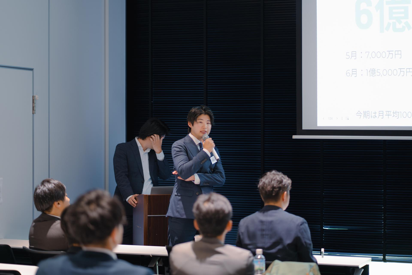 上期の売上の大幅な増加の報告と、さらなる高みを目指すために関西での支店展開が示されました!全国展開に向けての話に、社員からは驚きと期待の声があがりました。