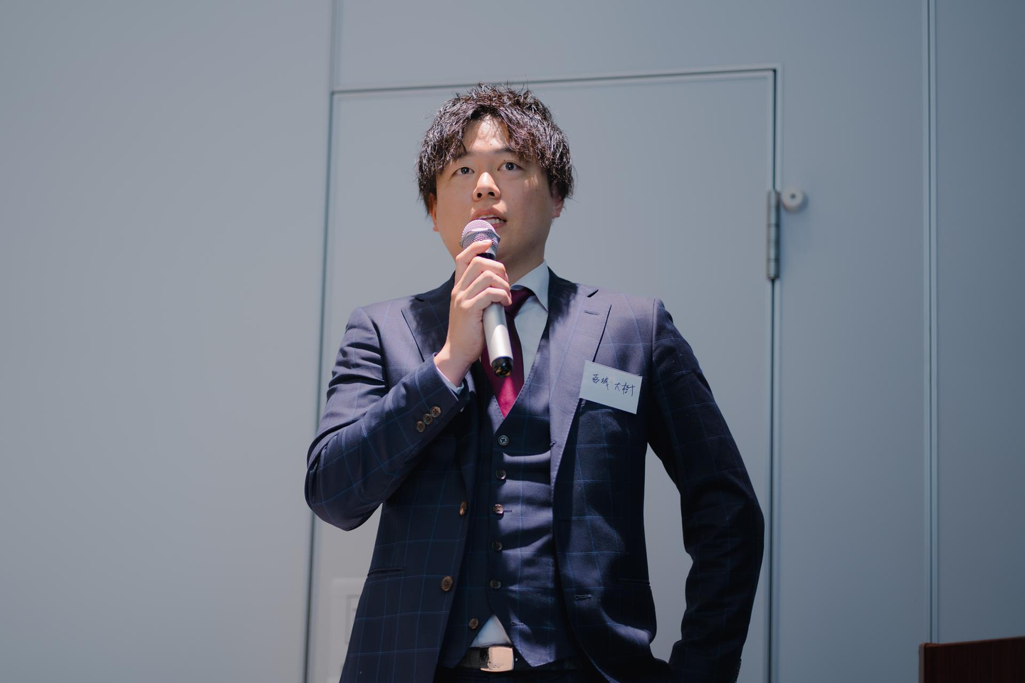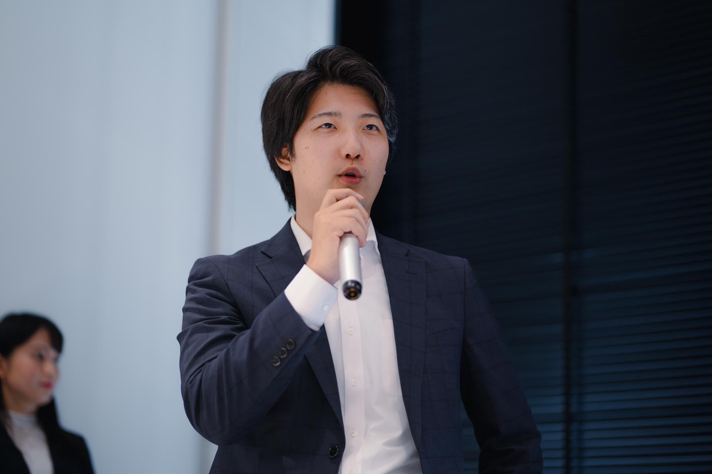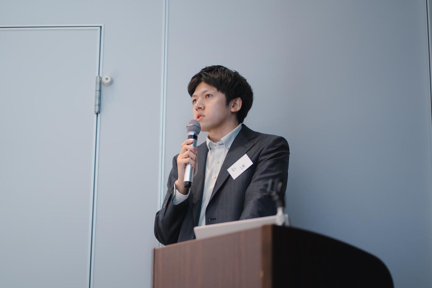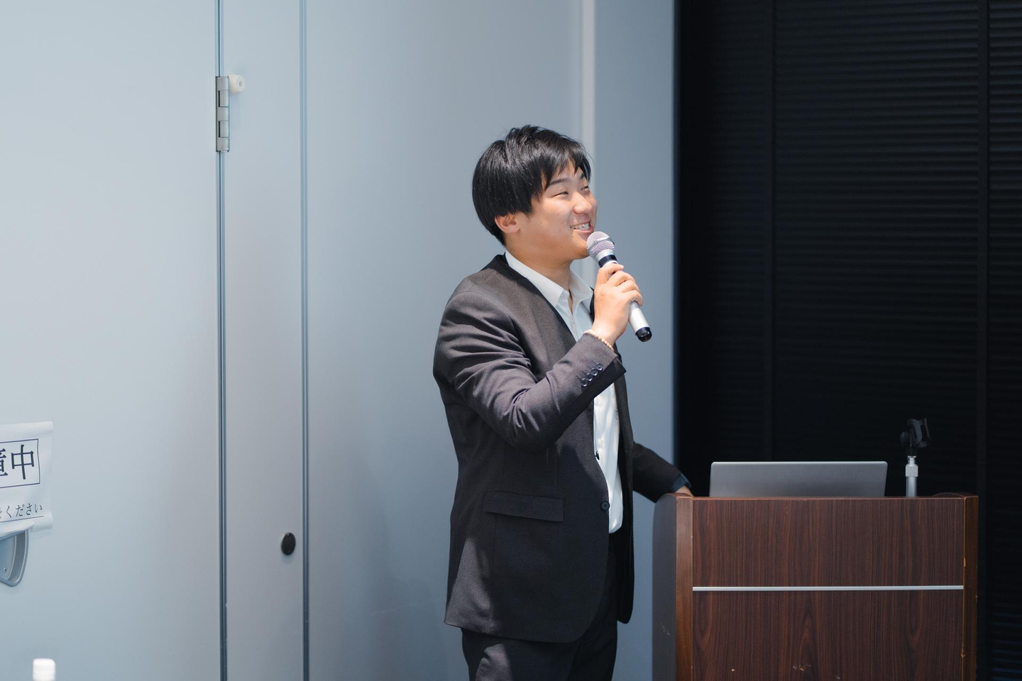 まずは、当社代表取締役である羽根岡代表の発表。