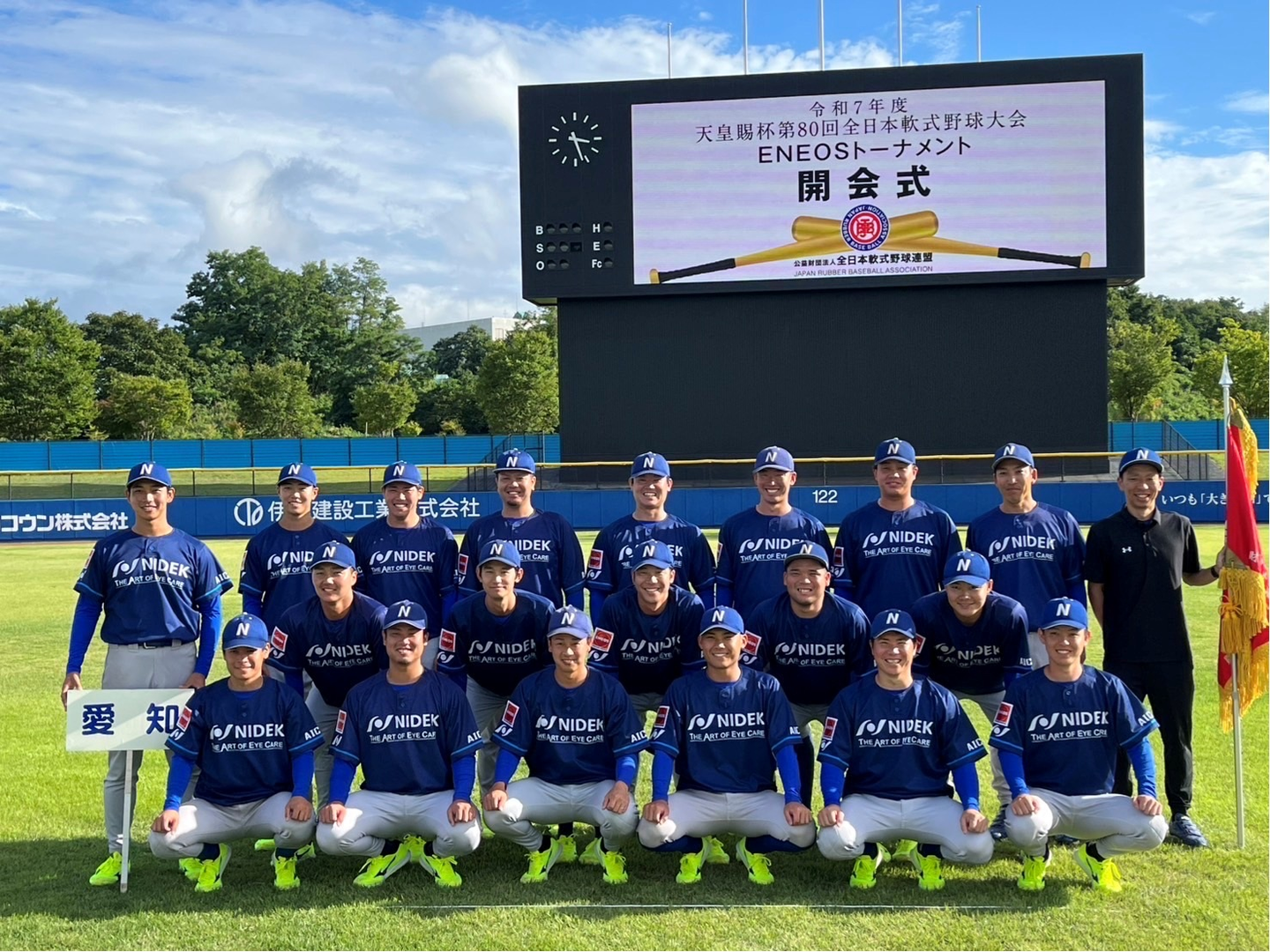 当社野球部は「天皇賜杯第80回全日本軟式野球大会ENEOSトーナメント愛知県予選大会」で優勝し、9/5(金)~9/10(水)にかけておこなわれた「天皇賜杯全日本軟式野球大会」に出場いたしました。本大会は、現在軟式野球界においてもっともレベルの高い権威ある大会といわれています。