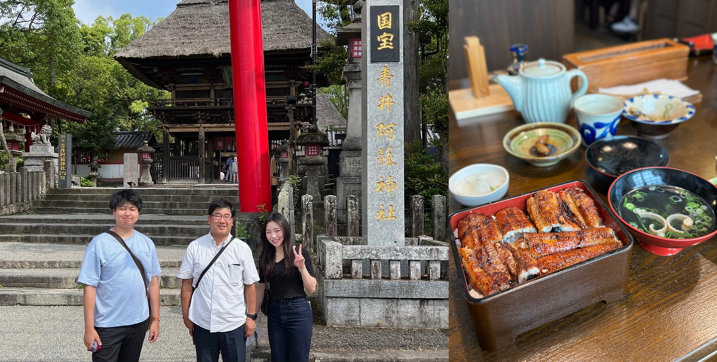 鹿児島市内から1時間程車を走らせ、熊本県最南部に位置する歴史的な町、人吉市へ向かいました。まずは市内の高台にある人吉城を散策し、美しい石垣や二の丸から見える城下町の風景を楽しみました。その後は国宝に指定されている青井阿蘇神社で、カラフルな獅子舞が散りばめられた御朱印をいただきました。昼食はうなぎ料理で有名な上村うなぎ屋へ。開店前にも関わらず行列ができていましたが、30分程で席に着くことが出来ました。うな重は肉厚でふわふわのうなぎに甘いタレが絶品で、あっという間に完食してしまいました。歴史的建造物と絶品のうなぎを堪能し、充実した3日目を過ごすことが出来ました。