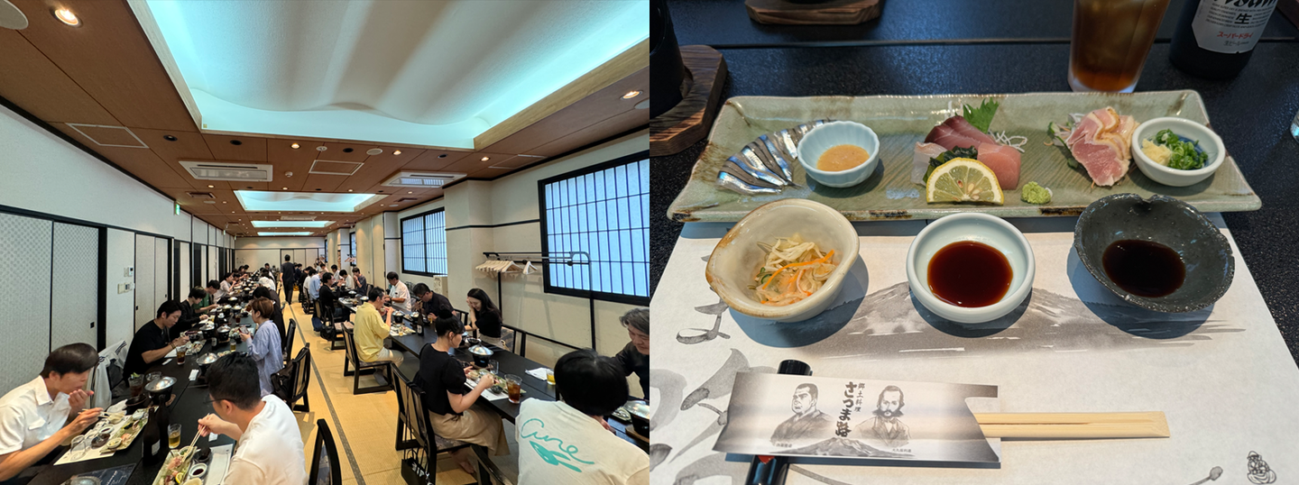 その後、ホテル近くにある夕食会場へ向かいました。海鮮を中心とした薩摩郷土料理を味わいながら、一同、懇親を深めました。