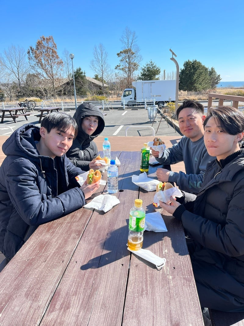 全員でご当地名物のナマズバーガーと鯉バーガーを食べました!