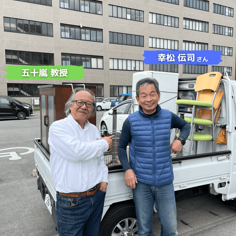 五十嵐教授は佐賀大学農学部の先生です。3月に定年退職されましたので、研究室の家電や家具を譲っていただきました。(写真の軽トラに積まれているもの全てです) 五十嵐教授は大学のフィールドワーク授業で川内野地区との関りがあり、地域の賑わい創出のため様々な仕掛け作りを実施されてきました。
