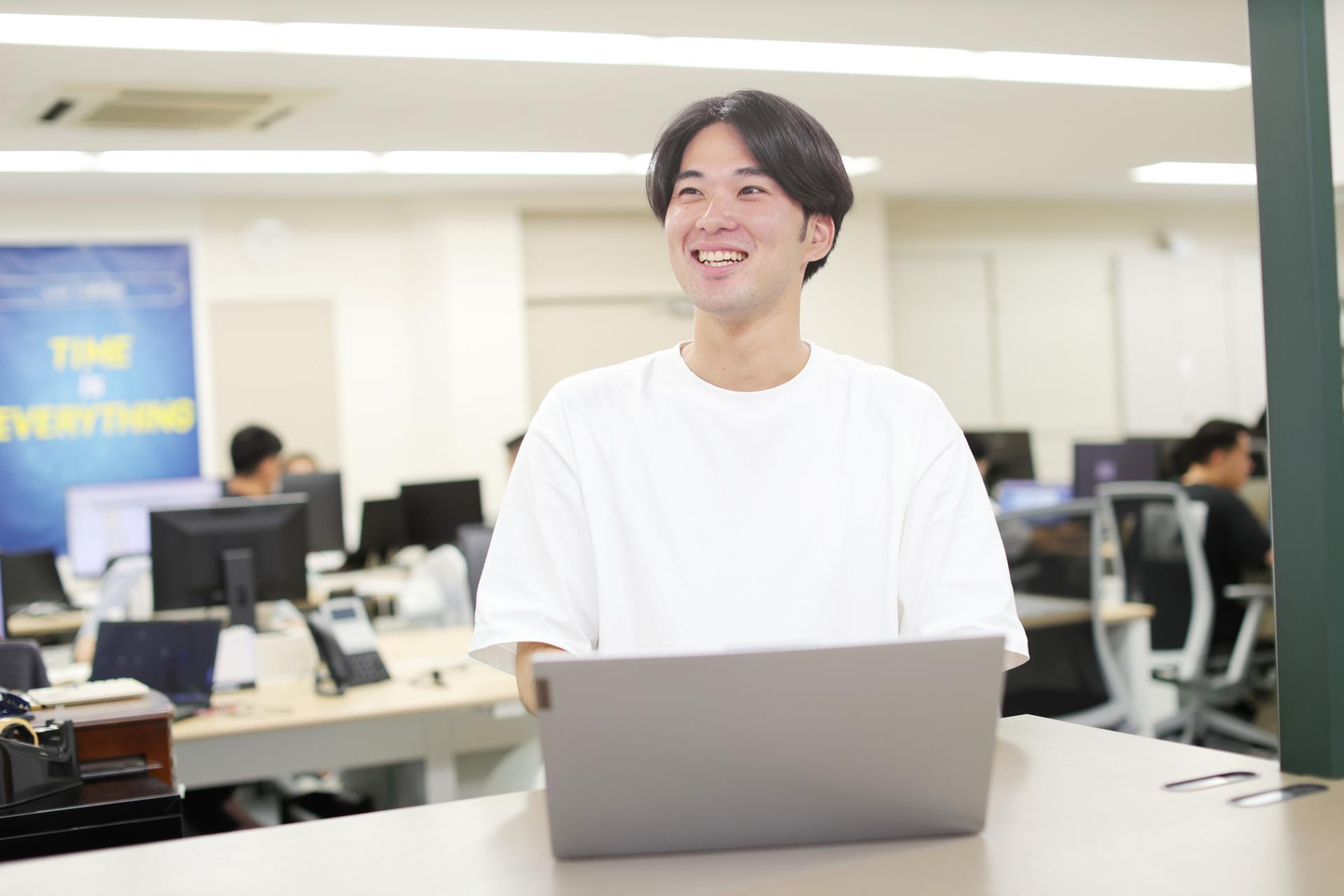 まだ入社から日が浅いこともあり、お客さまからの高度な問い合わせ内容に即答できないこともしばしばです。都度、社内のベテランメンバーに話を聞きながらプロダクト理解を深めていっています。弊社はワンフロアに全メンバーがおり、全社員やさしくきさくで、オフィス内も話しやすい雰囲気です。何かわからないことがあっても、すぐに聞きに行けますし、優しく応じてもらえるので、難しい質問が来た時も不安は全くありません。内容によって開発部隊や営業部隊や経営陣など社内で横断的にコミュニケーションをとっていきますので、いろいろな業務分野に接触できるのは面白く、日々勉強になります。