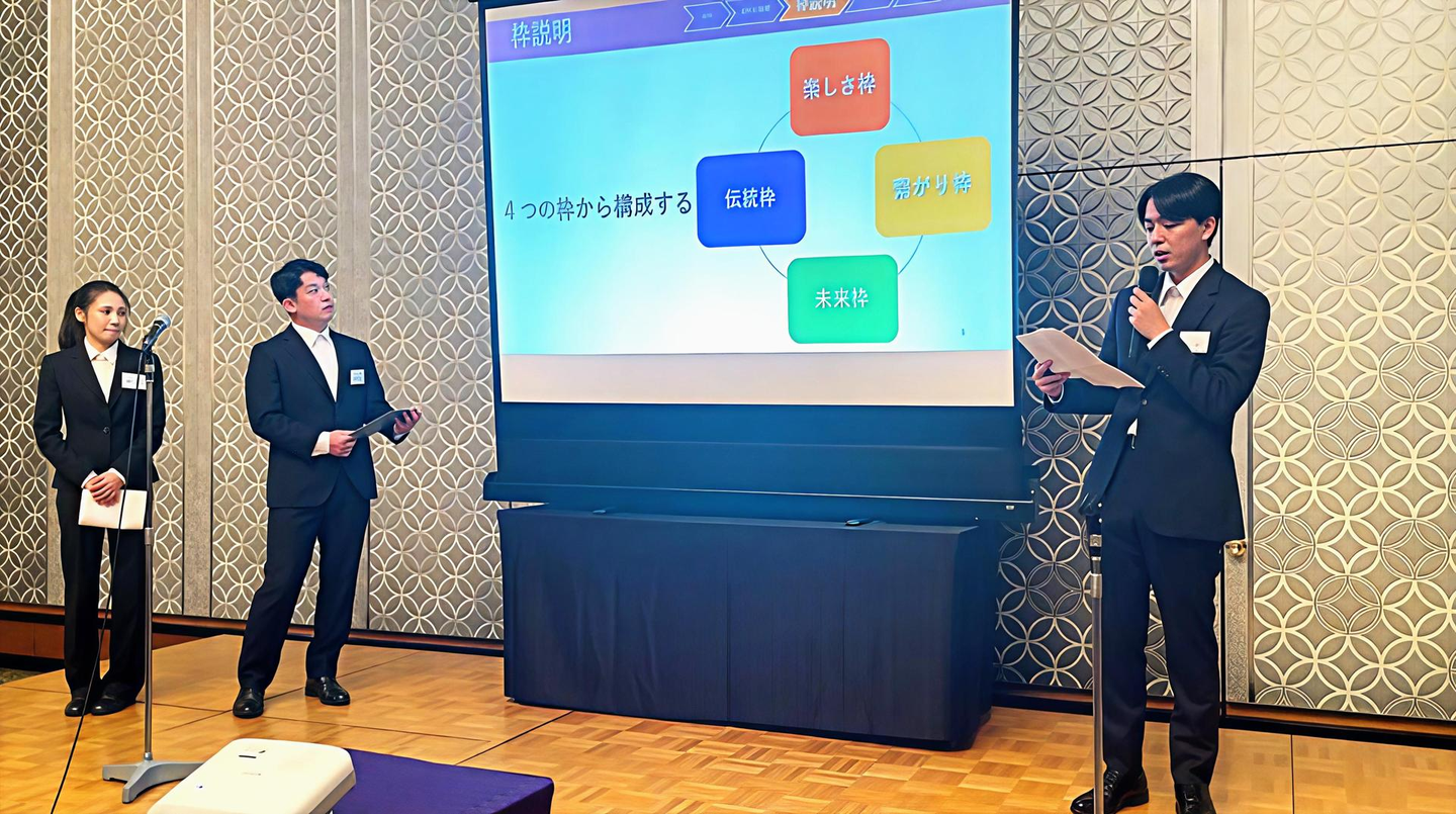会場が一瞬静寂に包まれる。「入行式リニューアル企画案」の発表が始まると、会場の空気が変わった。