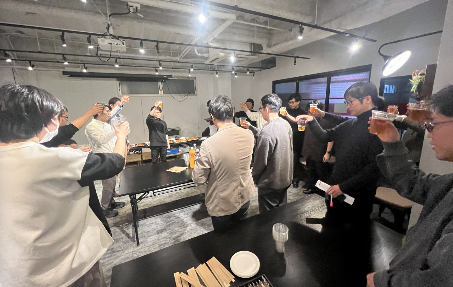 ※乾杯のシーン(シェアラウンジを借りて開催)