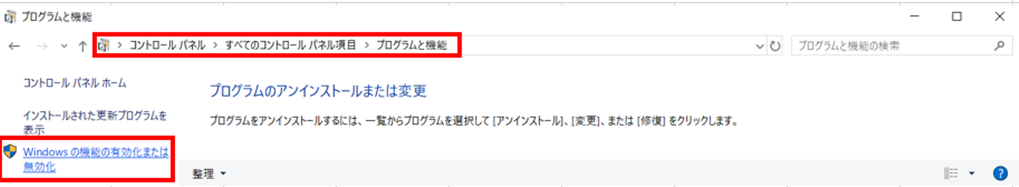 1)コントロールパネル>すべてのコントロールパネル項目>プログラムと機能
