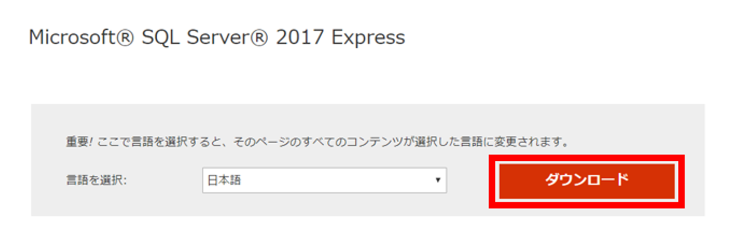 1)以下のURLからMicrosoft SQL Server 2017 expressをダウンロード