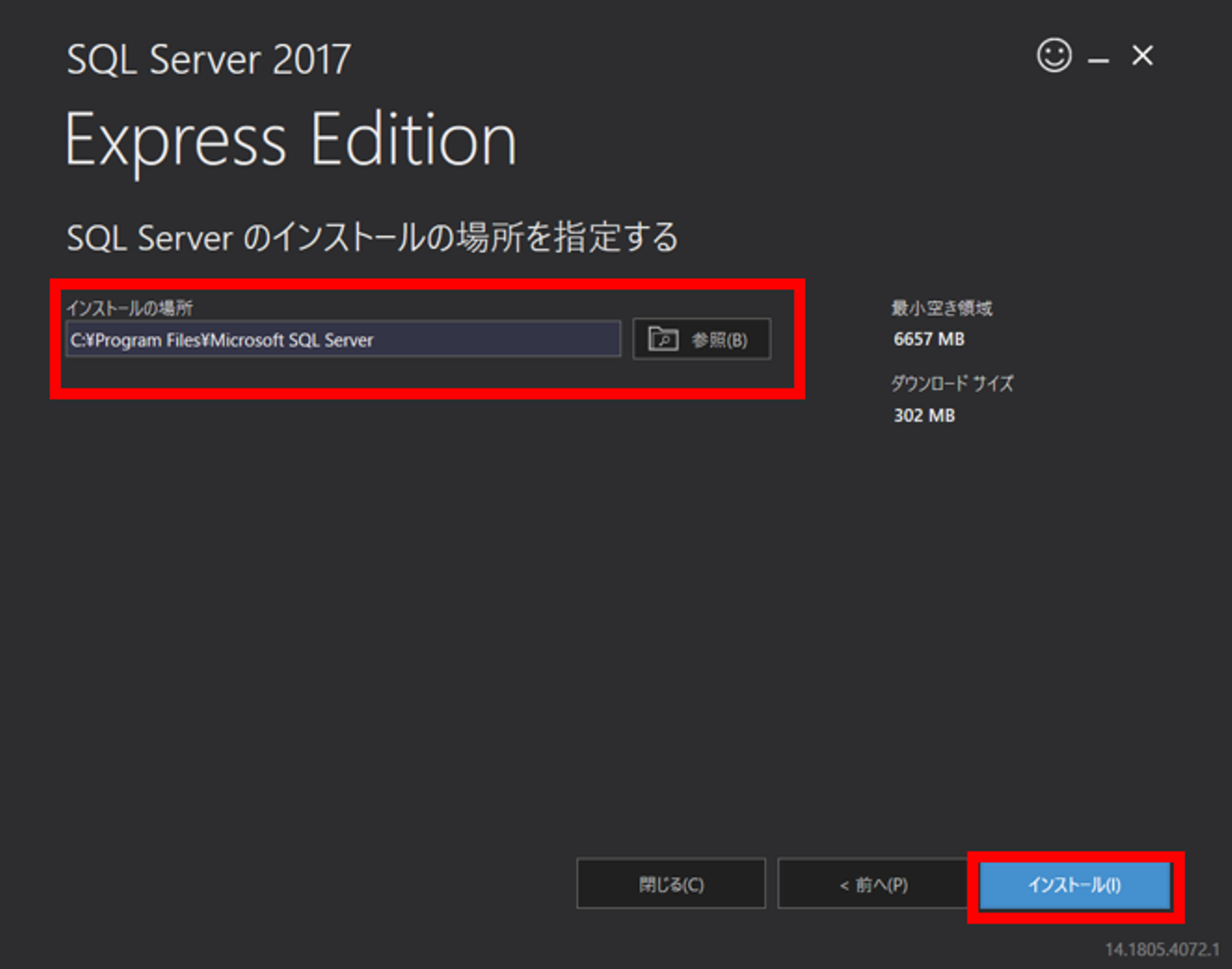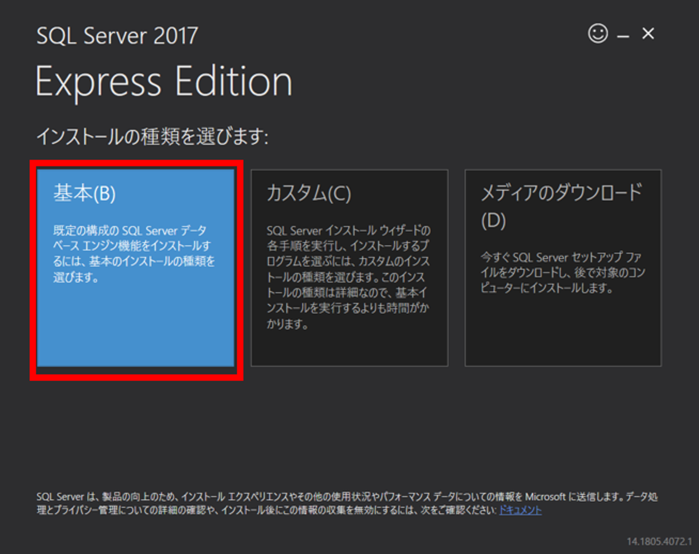 2)ダウンロードしたファイル(SQLServer2017-SSEI-Expr.exe)を実行