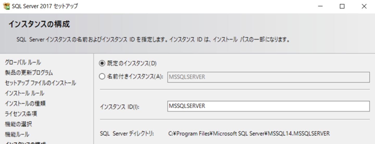※インスタンス名を自由に設定したい場合は「名前付きインスタンス」を選択してください。
