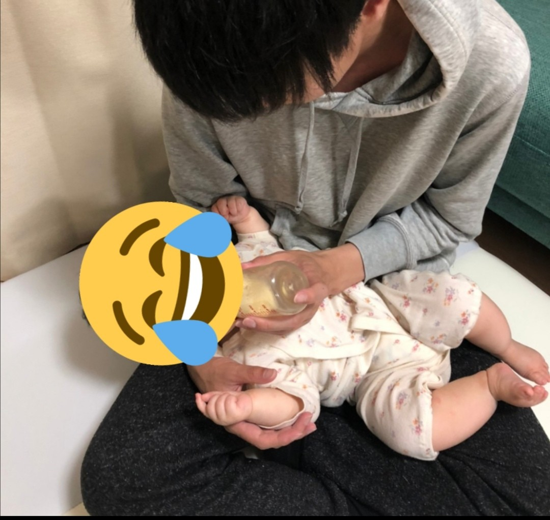 風呂上がりのミルクを与えます。