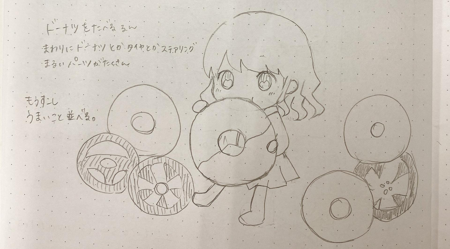 ちなみにこちらが私が描いた下書きです。落書きみたいですね。。。