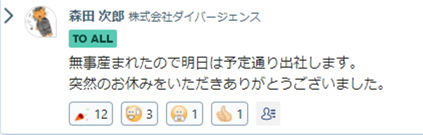 とりあえず代表の中田さんに「出生届を出しに行くので明日休みます」とチャット