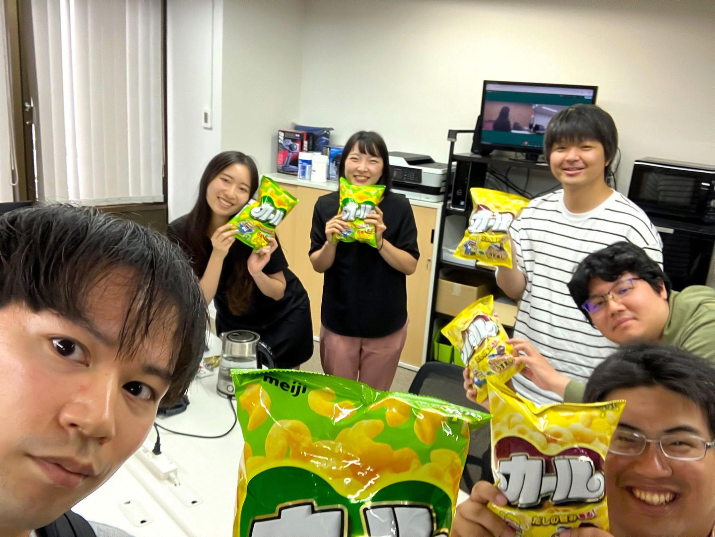 お土産のカールとともに東京支社のみんなで記念撮影