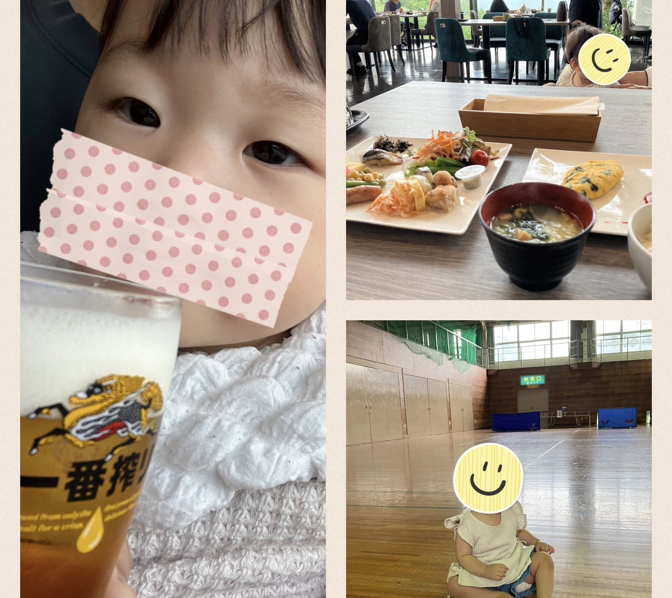 ラウンジで飲んだルービーと朝食と謎の体育館。