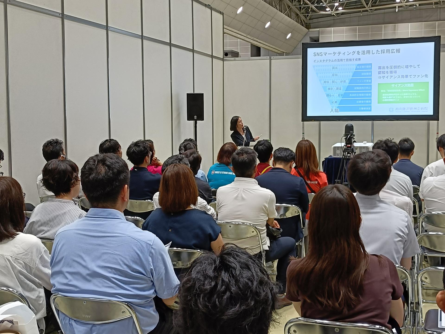 医療の未来を感じさせる展示やセミナーが並ぶ中で、特に心に残ったのが、1枚目の写真に写っている方――“医療界のSNSの女王”として知られ、『ガイアの夜明け』でも取り上げられた湘南藤沢徳洲会病院の町田詩織さんの登壇です。