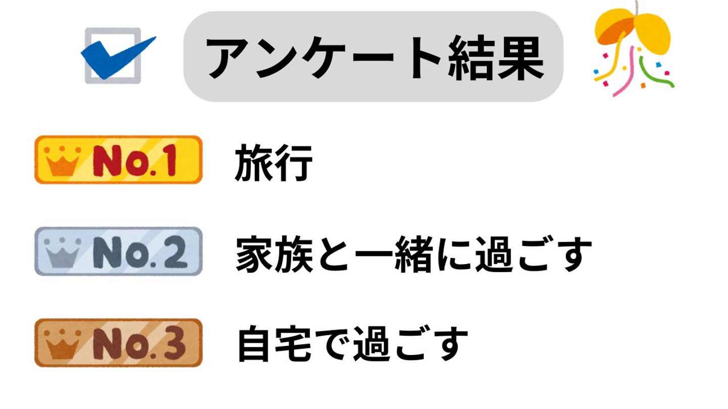 長期の休みは、旅行に行く人が圧倒的に多かったです。