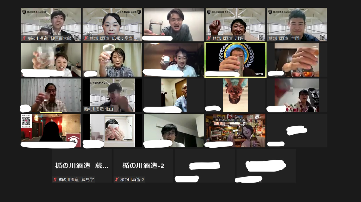 蔵見学を終えたあとは、Zoomのブレイクアウトルーム機能を使用して、蔵人+参加者様を少人数グループにわけた交流会へ。