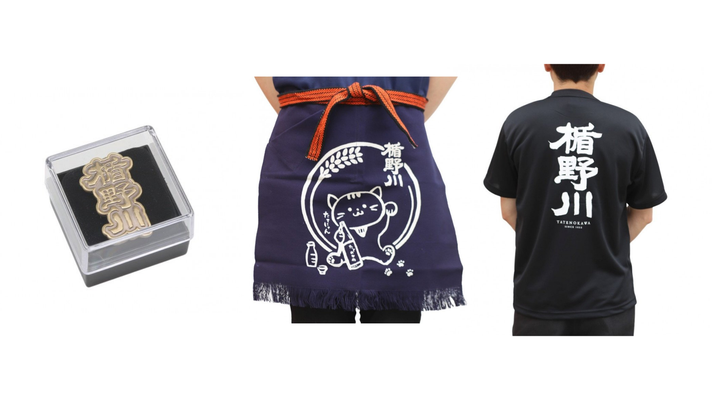 (楯野川ピンバッチ:たてにゃん前掛け:楯野川Tシャツ)