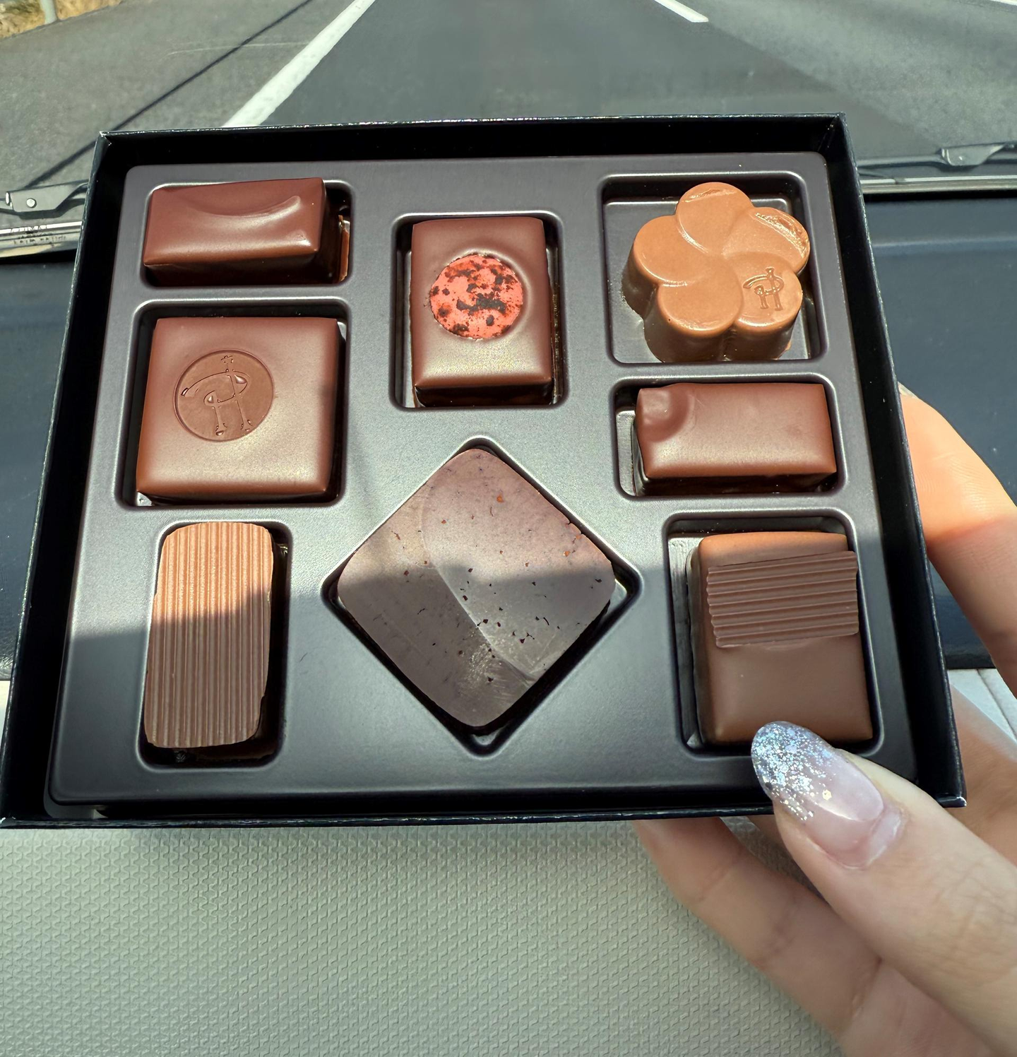 移動中のお供はチョコレート!甘いものをつまみながらのドライブは、なんだか特別感があって楽しいですよね。小休憩しつつ、リフレッシュしながら目的地を目指しました。
