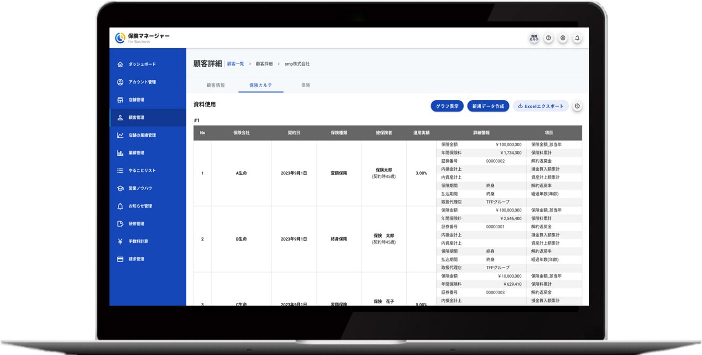 はい、「保険マネージャー for Business」の新しいサービス「保険カルテ」を開発しています。