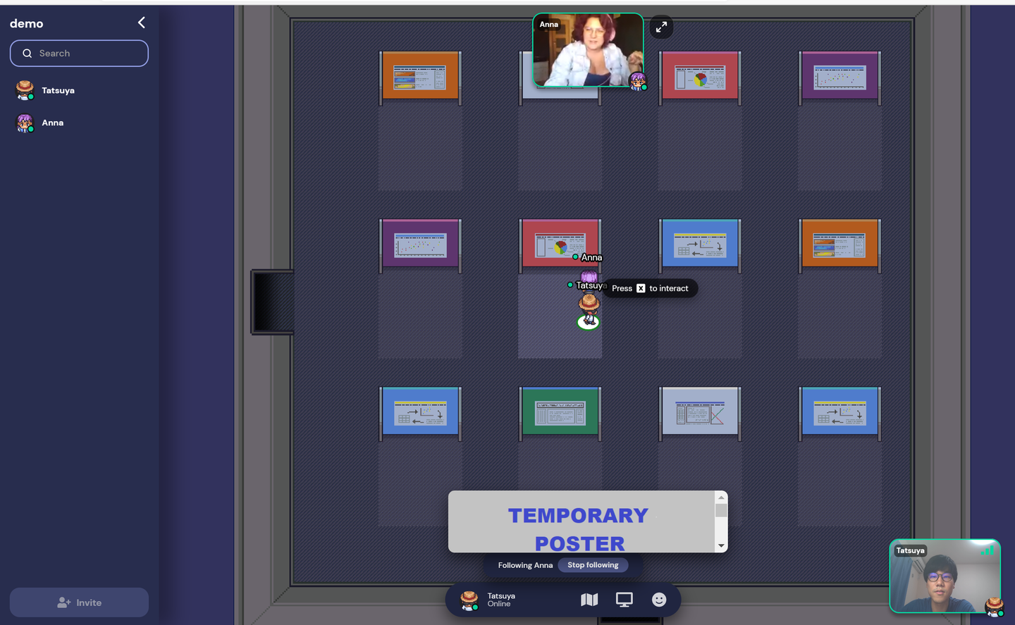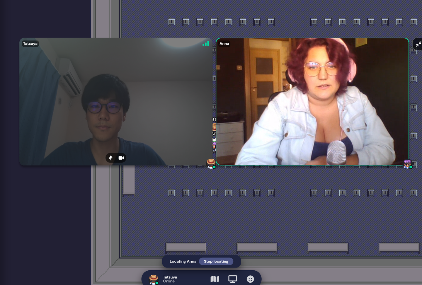 (AnnaさんにGather Townを案内してもらっている風景)